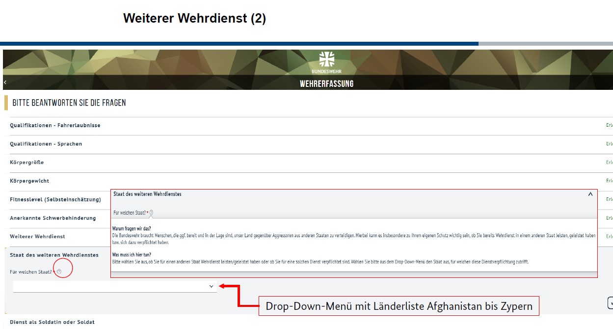 The questionnaire takes about 15 minutes to complete and is divided into several sections covering personal details, qualifications, health and fitness, and motivation. Recipients can also expect questions about how long the would like to serve in the army, if at all, and in which capacity.